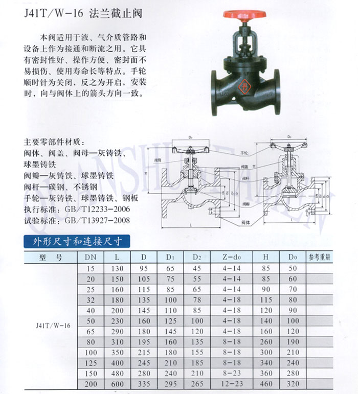 J41T/W-16 法蘭截止閥